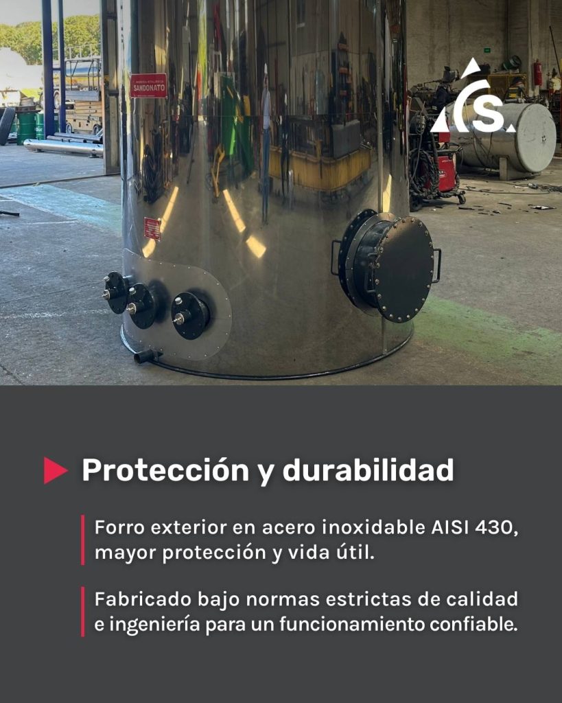 ✨ Forro exterior en acero inoxidable AISI 430, garantizando protección y durabilidad.